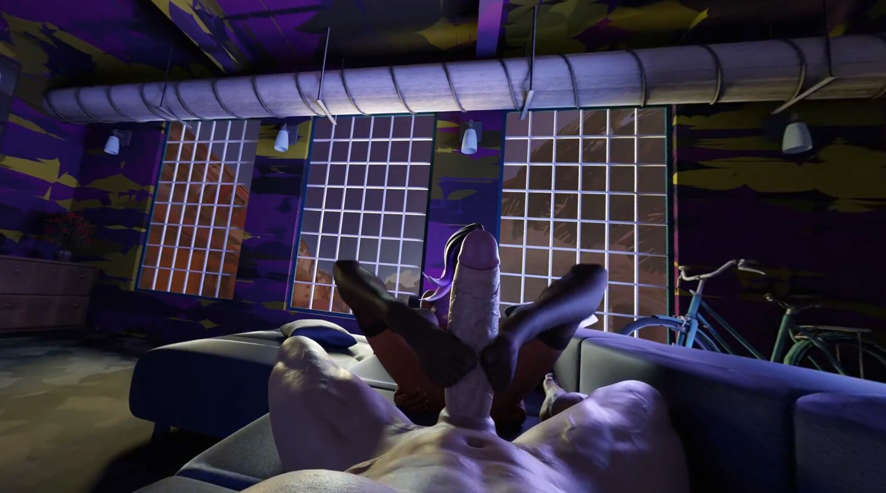 You were at work when Sombra asked you to let her into the dressing room. But after you did just that, she resumed and asked you what you think. Speechless! She looks so good in those stockings, doesn't she? What would you say if she invited you back to her apartment?