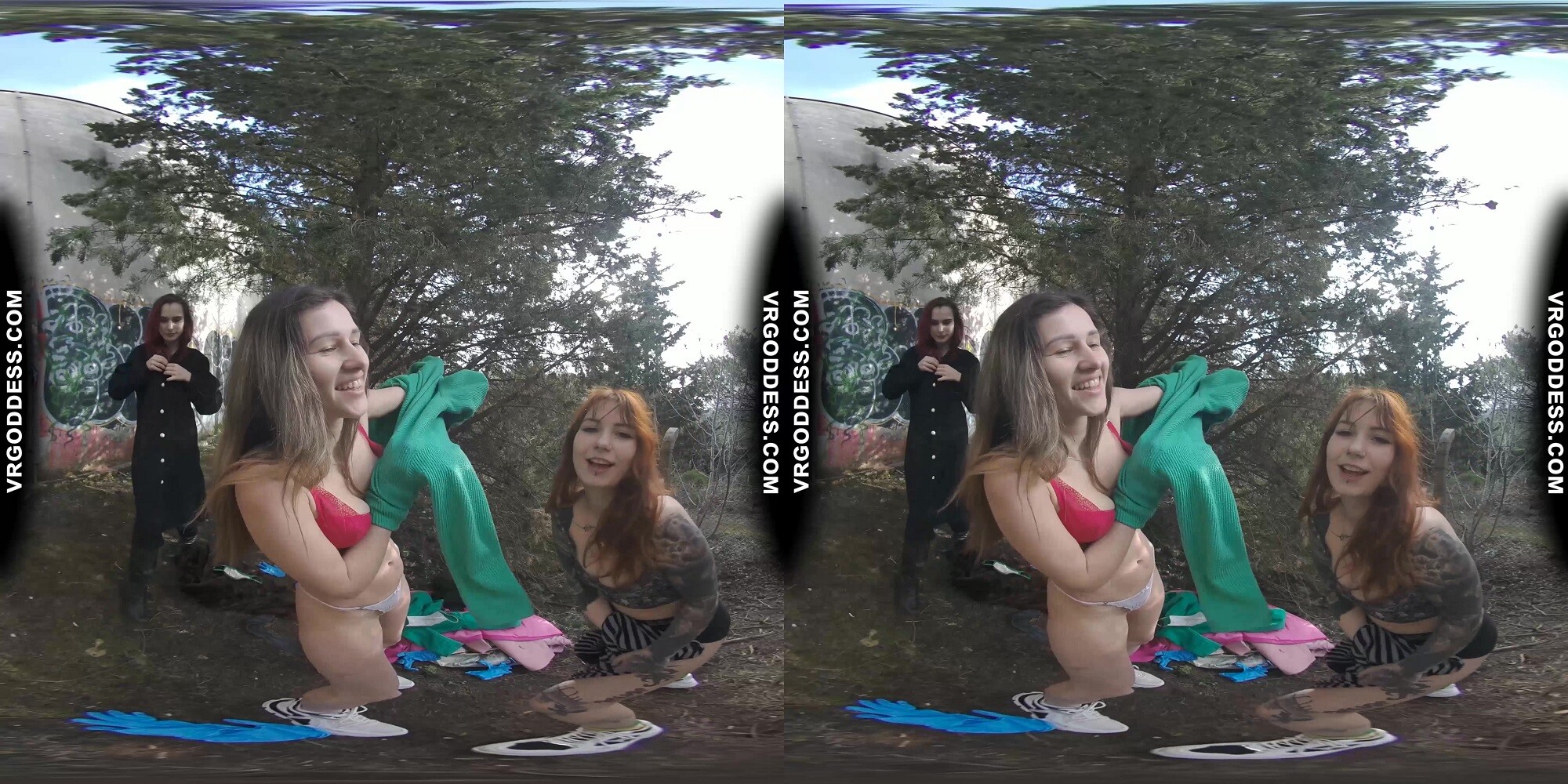 Cherri, Josie, and Poppy are ready to get naked outdoors in this stunning 6K VR video. The sun is shining, the grass is green, and these three babes are ready to let loose and have some fun. With their natural tits, shaved pussies, and piercing eyes, they're a sight to behold. Watch as they strip down and get comfortable in their own skin, showing off their bodies in all their glory.