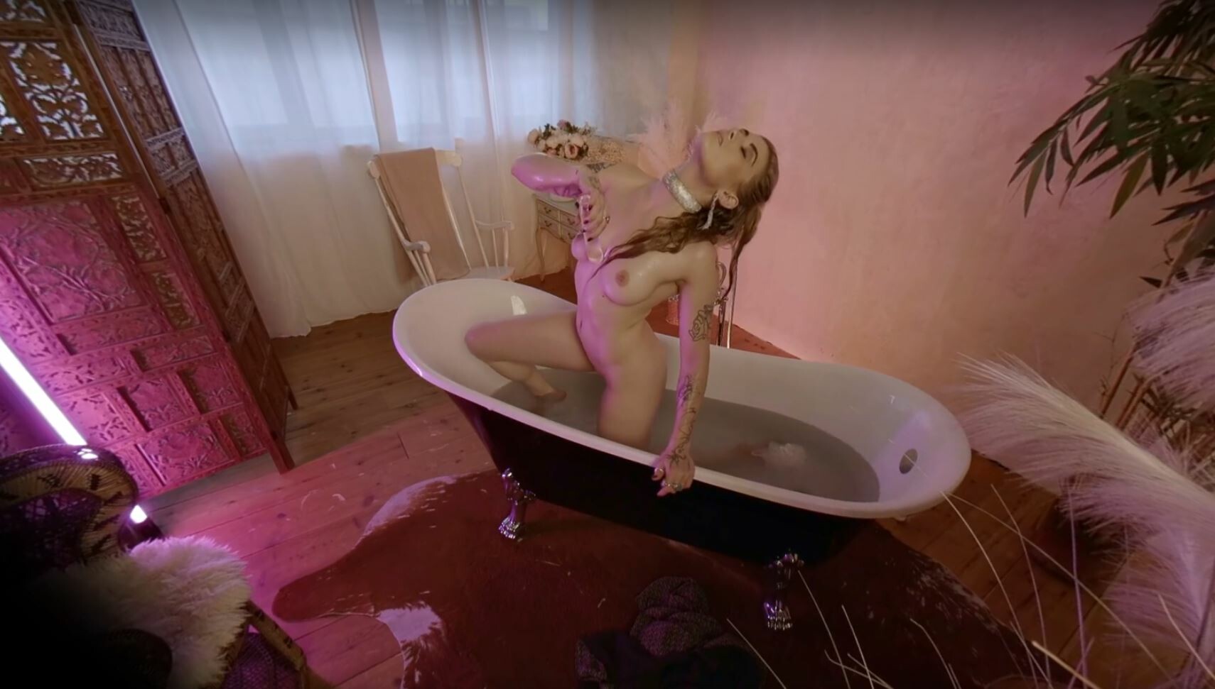 Ruin Lux's sultry bath time adventure is a must-watch for any VR enthusiast. With her stunning blonde hair and natural beauty, she sets the tone for a sensual and intimate experience. As she teases herself with a dildo, you'll feel like you're right there with her, indulging in every moment of pleasure.