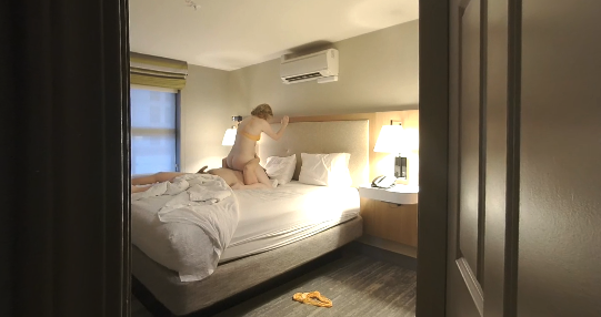 Submit to the ultimate voyeur thrill as blonde MILF goddess Jess Toyst turns a quiet hotel room into pure forbidden heat in breathtaking 8K VR. From the moment she appears on screen, lounging in sheer lingerie that hugs her curvy frame, you're hooked. Her long blonde locks cascade over her shoulders as she teases with light touches, locking eyes and whispering "pretend you're hiding in the closet watching me" in that sultry voice that instantly makes you throb. The tension builds as she strips slowly, revealing her perfect natural medium tits and shaved pussy, her pierced nipples hardening under her own teasing fingers while she spreads wide for close-ups that make you feel like you're right there spying.