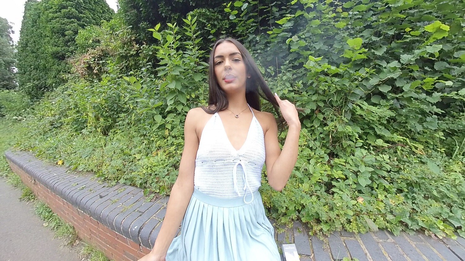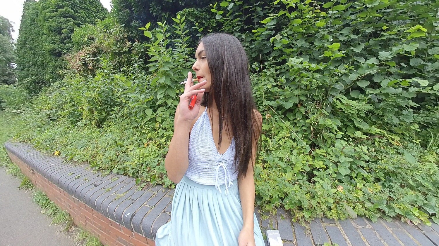 Join Kim Model as she enjoys a nice smoke on this lovely summer day here in the UK, (we don’t get many sunny days!). Get up close and personal wih this beauty as she blows her smoke directly in your face!