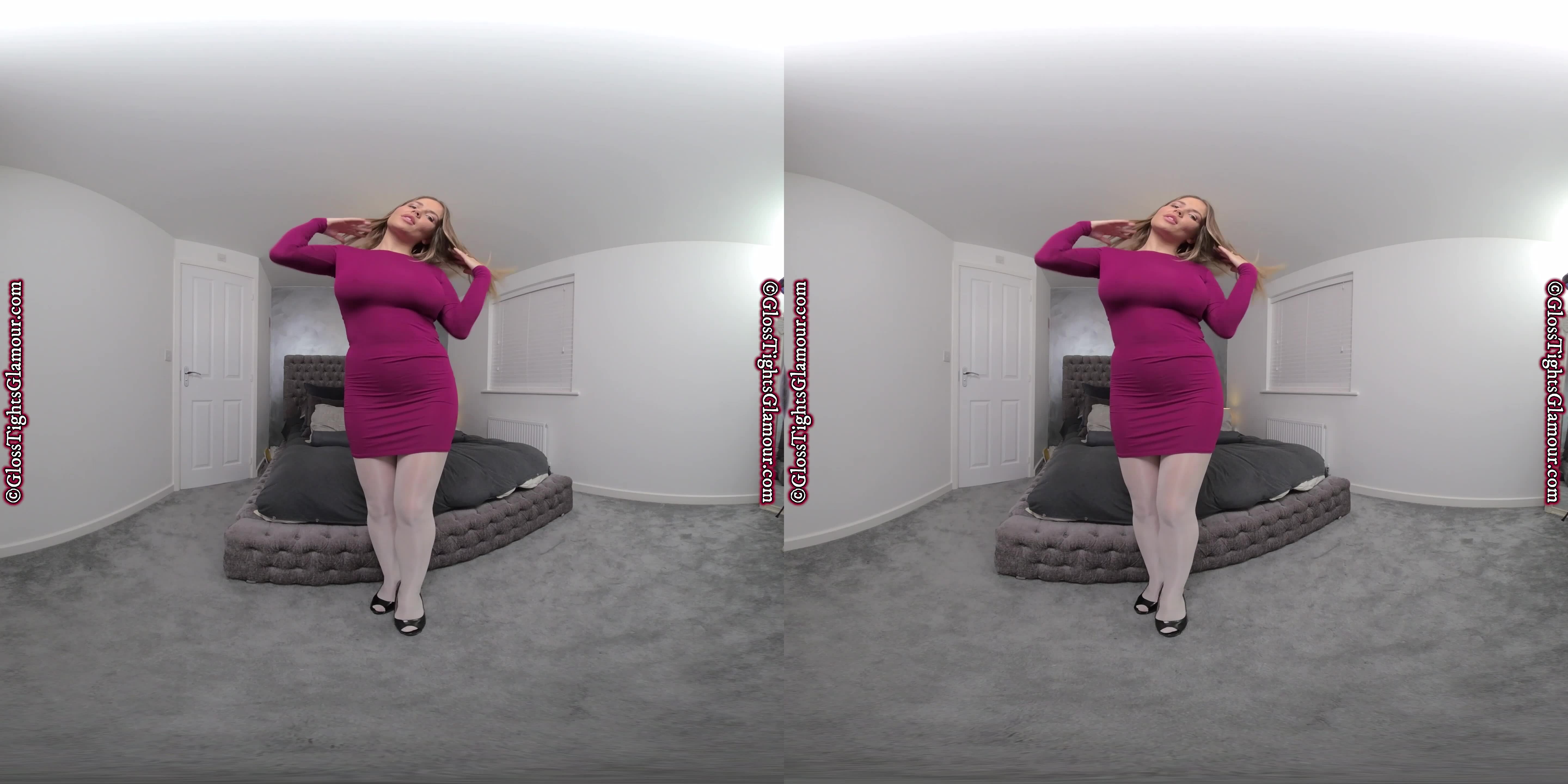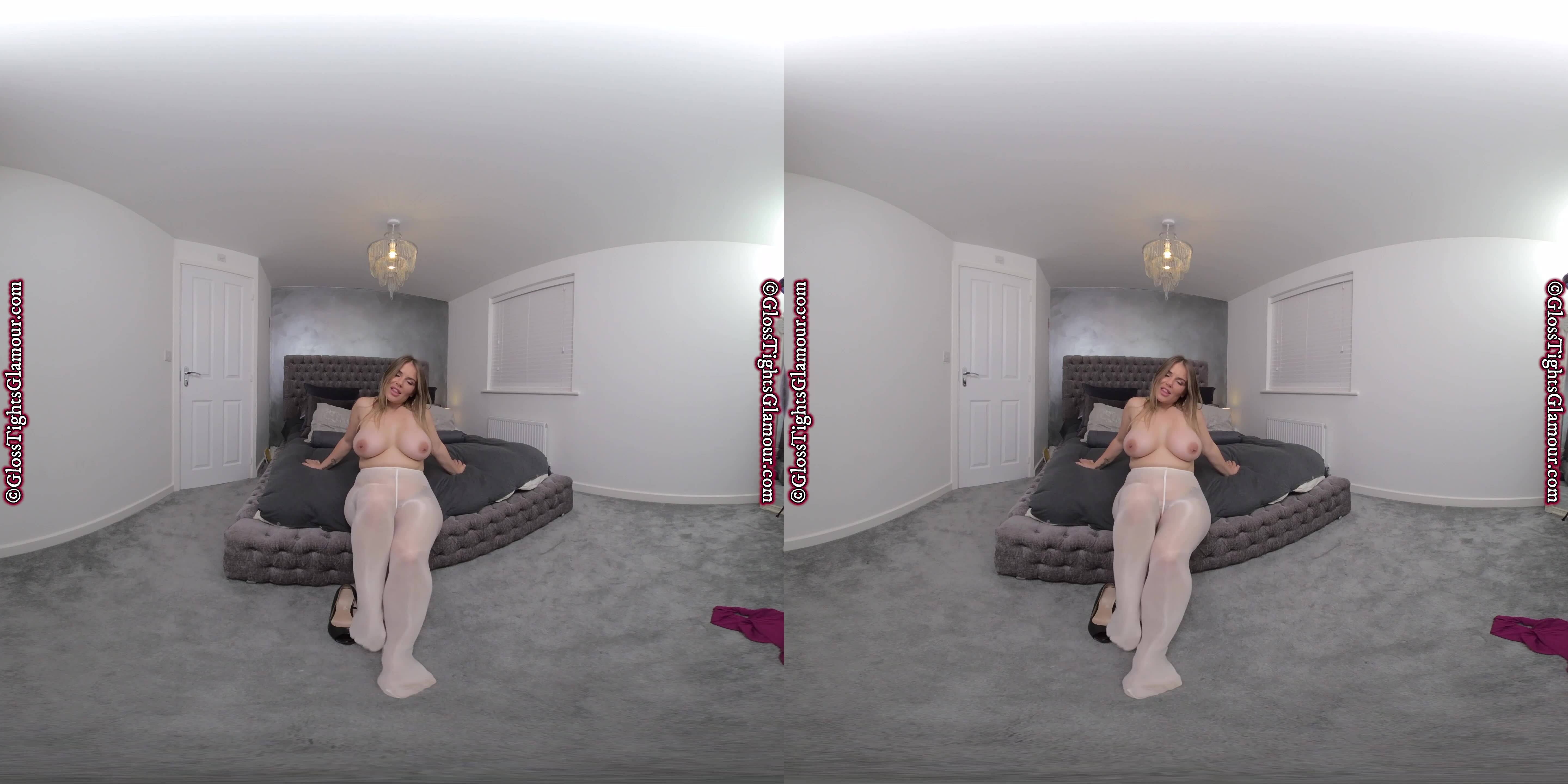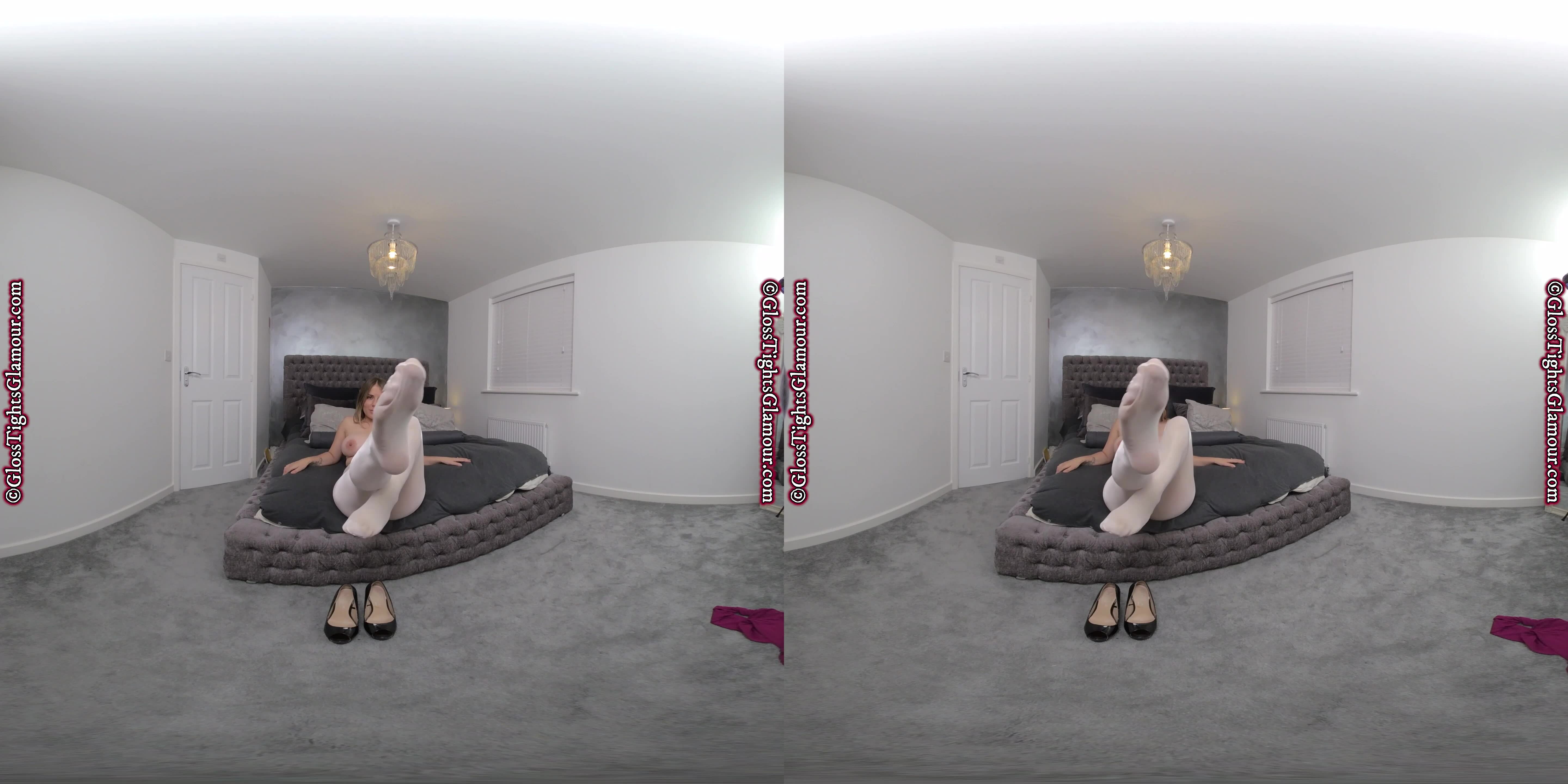 Siobhan is thrilled to show off her latest legwear in this VR video that is guaranteed to put a smile on your face when she shows off her white glossy tights/pantyhose and more besides!