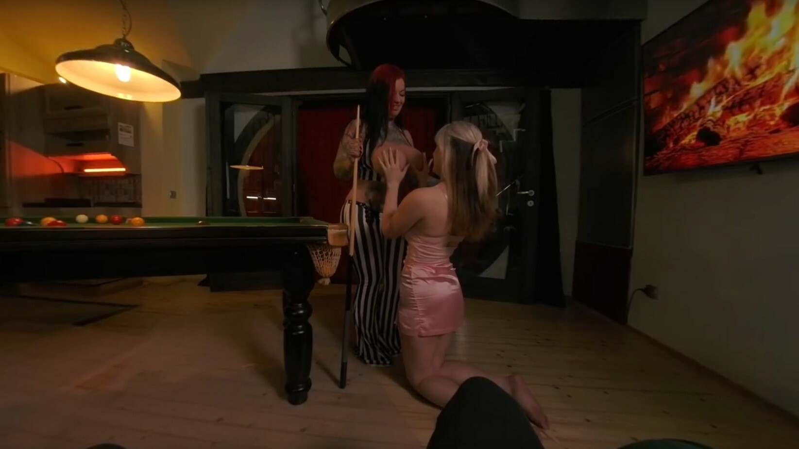 Man, I gotta tell ya, diving into this VR scene with Sabien DeMonia and Sunflower Doll at a billiard club is somethin’ else. Right from the start, you’re pulled into this naughty bet scenario, and the tension is just electric. Sabien’s got this fierce, commanding vibe, while Sunflower plays the sweet yet daring counterpart—together, they’re pure fire.