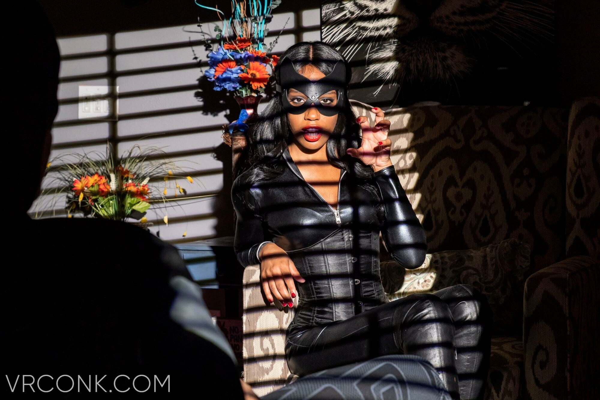 There is no way that you have never heard about the iconic character of the Catwoman – and since the latest Batman movie has just been released, we just had to commemorate that sexy kitty on behalf of our new cosplay VR porn movie. The Bat And The Cat is the newest parody VR sex scene at VRConk.com on behalf of which one-of-a-kind ebony VR porn star Lacey London has become the abovementioned Catwoman. Wear your VR goggles to become the Batman himself and pay a visit to Catwoman’s little apartment – to deal with some… business with her. The point is that lately Lacey has been a bad, bad kitty, and she has deserver a punishment – and who if not you, the dark avenger, could punish her for her crimes? The problem is, though, that she can be really, really charming if she wants – and indeed she will try to use a lot of different methods to change your mind and make you forget about everything bad she has done lately. Will you forget about your plans and just enjoy the evening with that sexy little kitten? Or maybe you want to abuse her methods, have a blast with her tight little pussy, and then get her to jail anyway? The choice will all be yours – just wear your VR goggles now and watch The Bat And The Cat at VR Conk to become a part of this unique fantasy in the wonderful DC universe! Gotham indeed is a city of crime and punishment – and today you will have to decide whether the punishment gets to be rough, or maybe a little bit more… enjoyable, given the fact that Catwoman’s throat and pussy are so tight, wet, and sweet… The Catwoman is waiting for you as we speak!