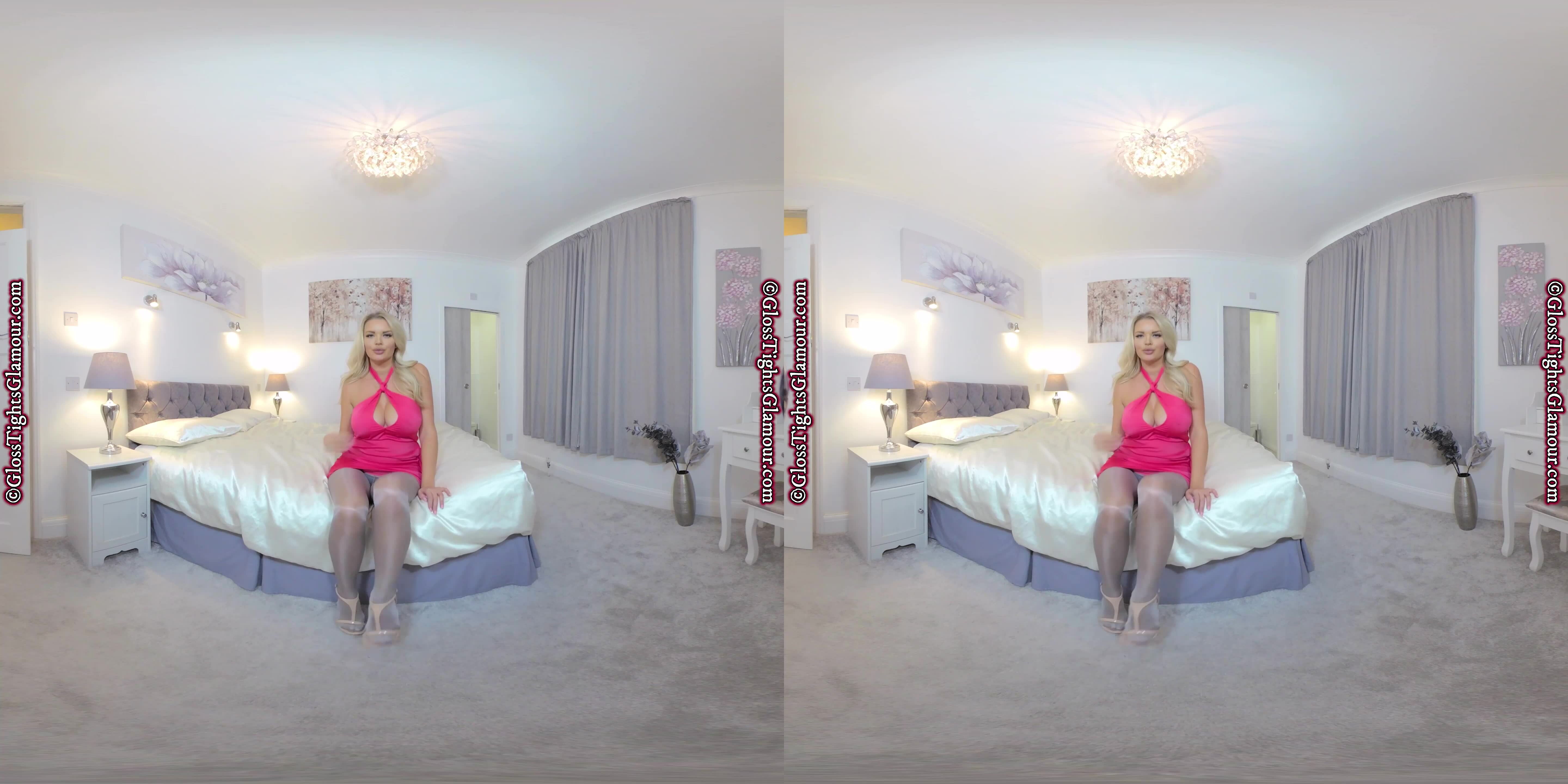 Sophie B Stylish Pink Dress with Grey Glossy Tights/Pantyhose - 8K VR