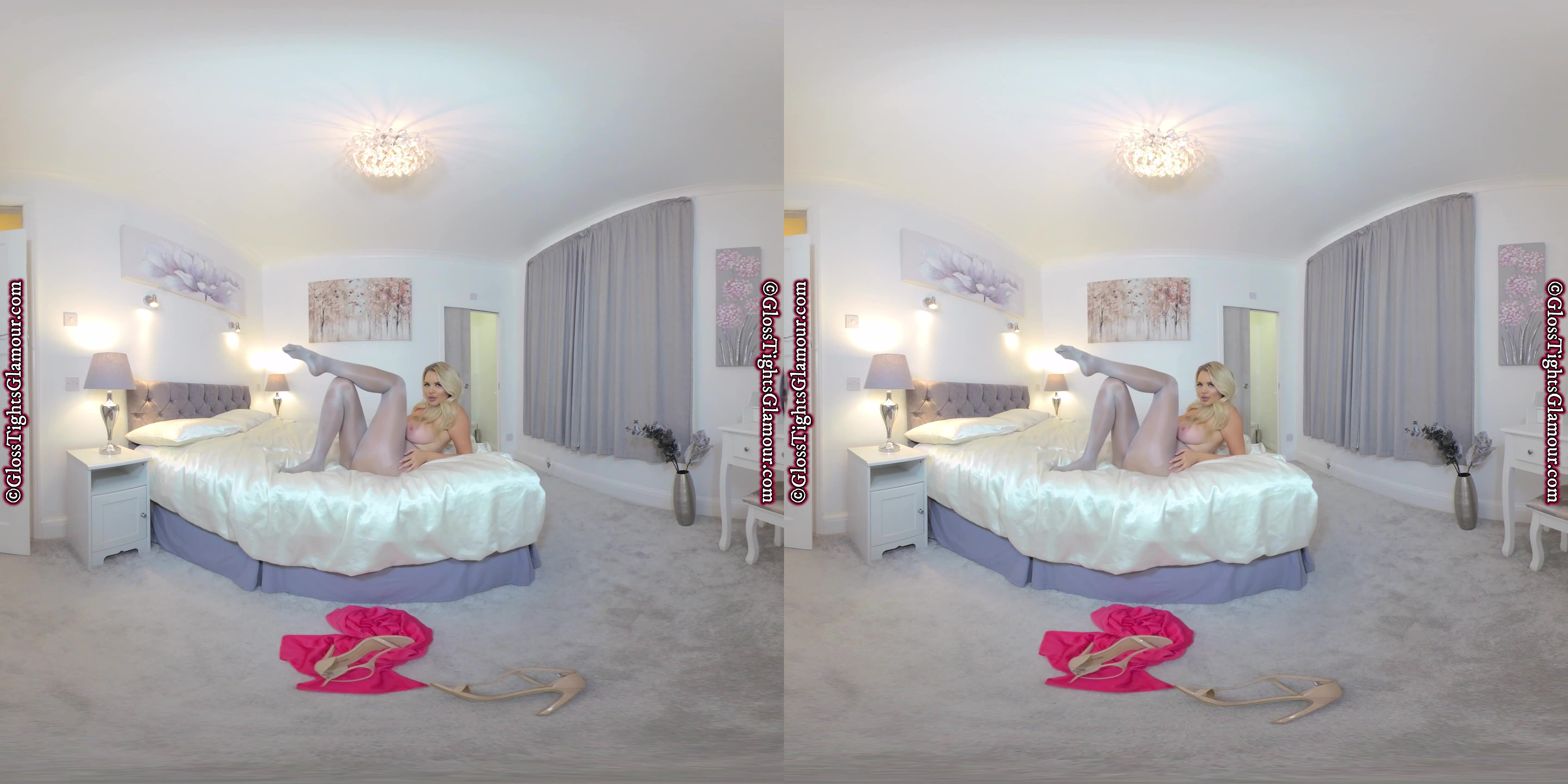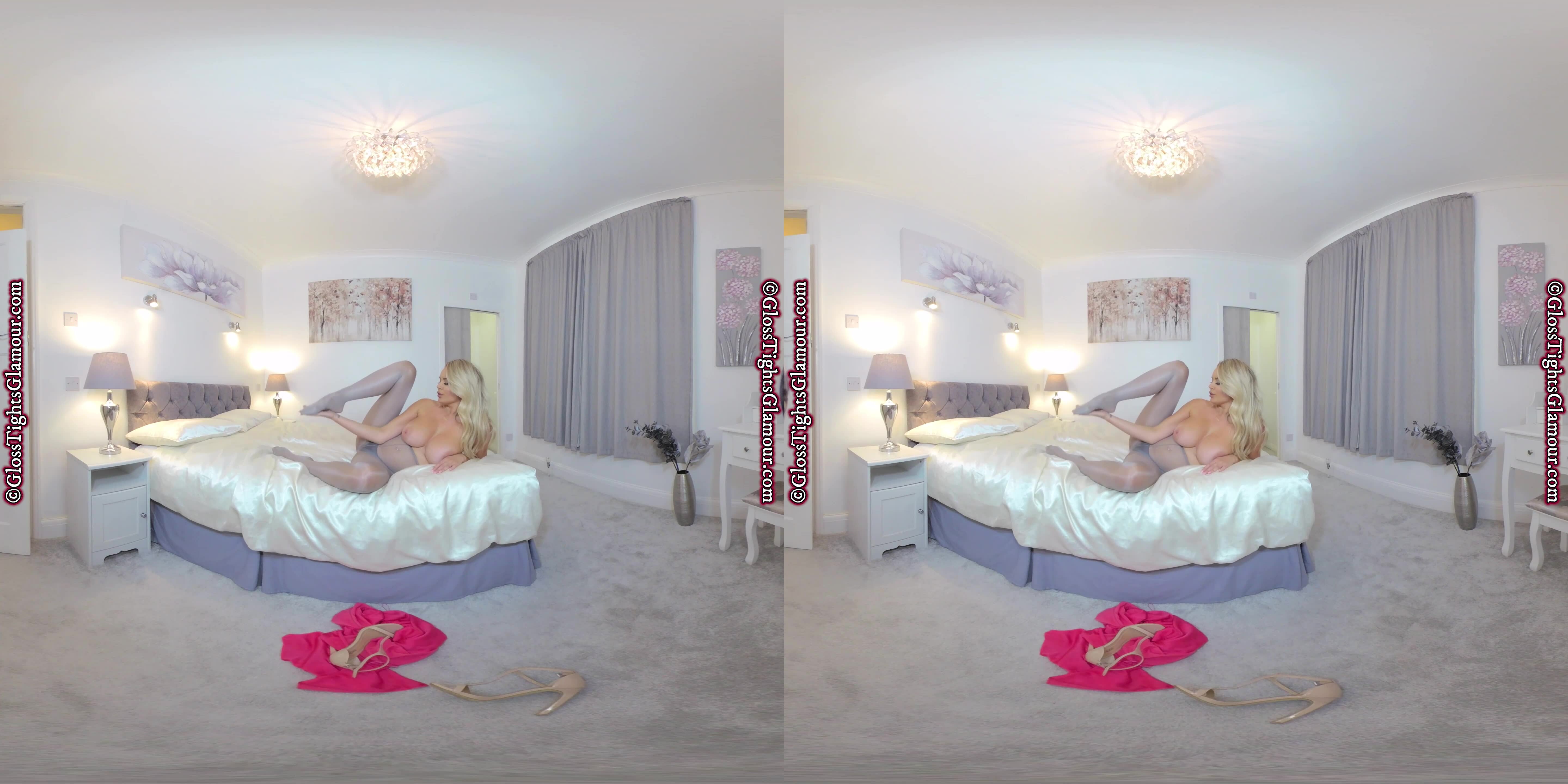 Aria Secretary With Grey Glossy Legwear Bedroom Tease - 8K VR