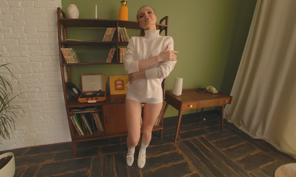 The tension builds as she teases, each glance and subtle gesture pulling you deeper. When she shifts into a sensual sitting pose, damn, it’s like the room heats up—you can feel the anticipation. Her performance ain’t just visual; it’s emotional, making every moment in this immersive VR hit hard. Honestly, the way she locks eyes through the screen, its like she’s right there with ya.