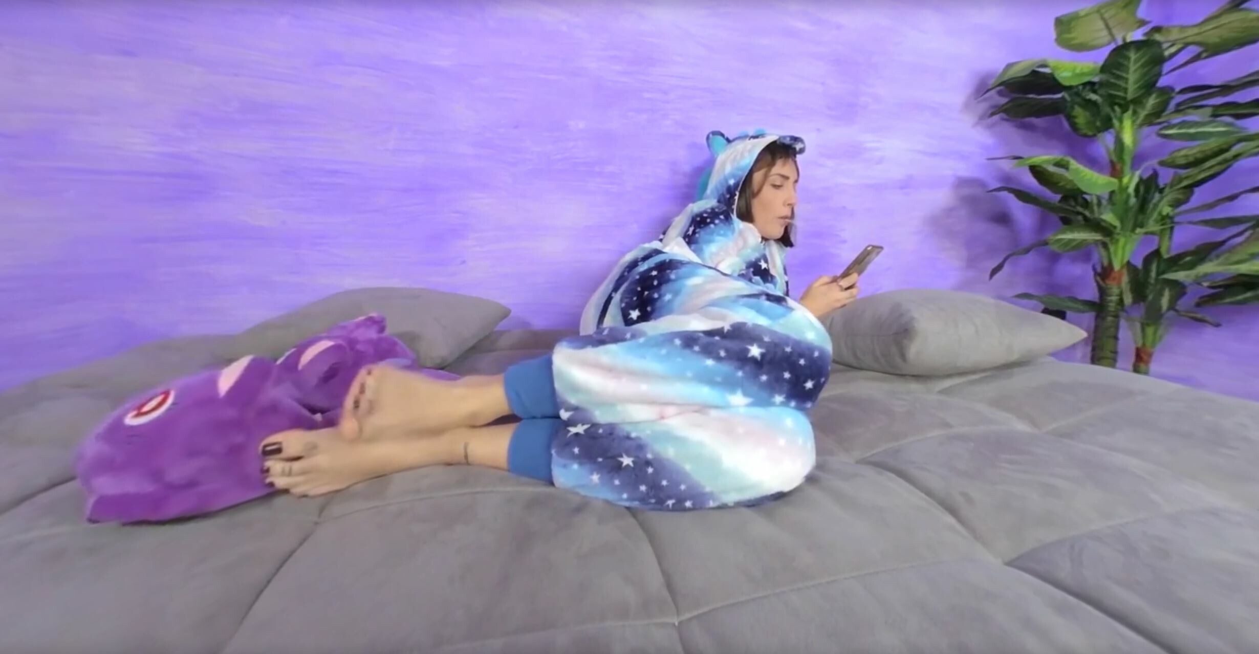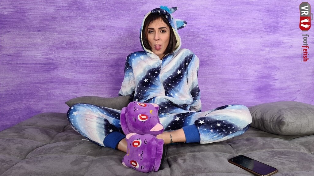 Stunningly beautiful Aradia is browsing on her phone in her bedroom, while sucking on a lollipop. The sexy babe is wearing a one-piece hooded pajama and a lovely pair of fluffy, purple slippers, and looks hot as the sun even without showing an inch of skin. Smoking-hot Aradia wiggles her feet, takes…