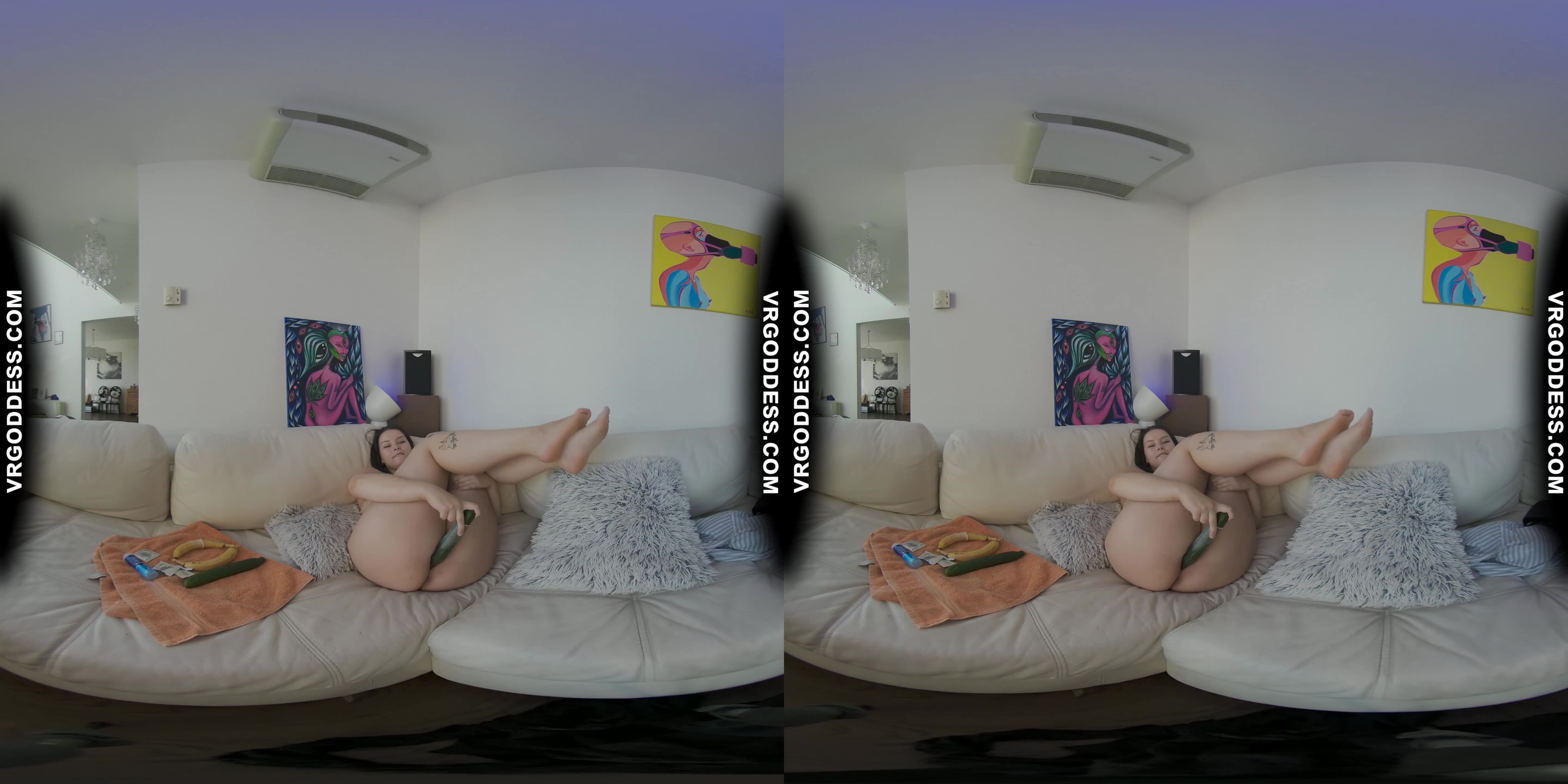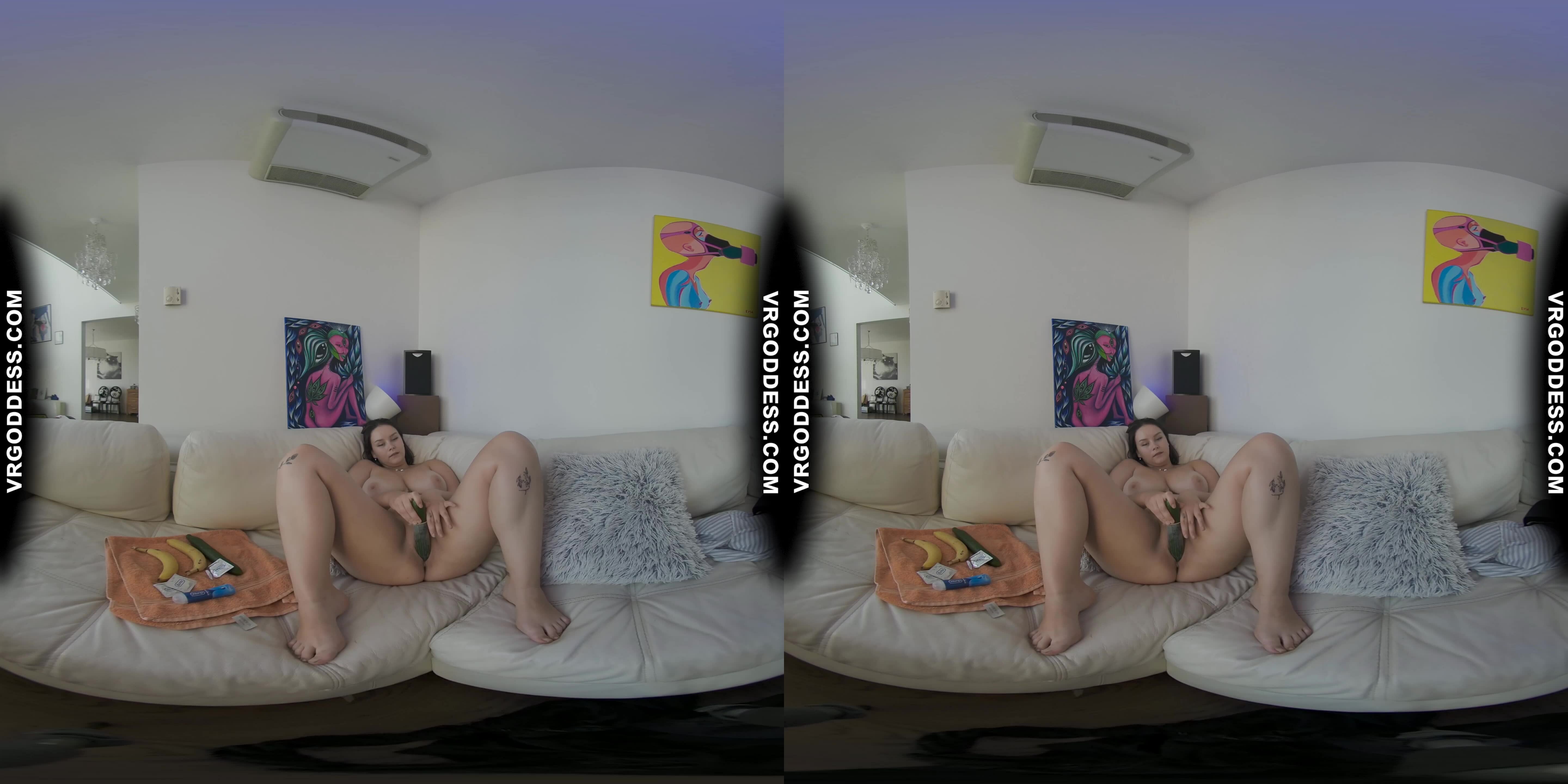 Join Vanessa Klein on this sensual journey as she teases and tantalizes in a 4K VR scene. She starts with a banana, slowly peeling it and stroking her big tits. As the anticipation builds, she brings out the cucumbers, using them to tease herself further.