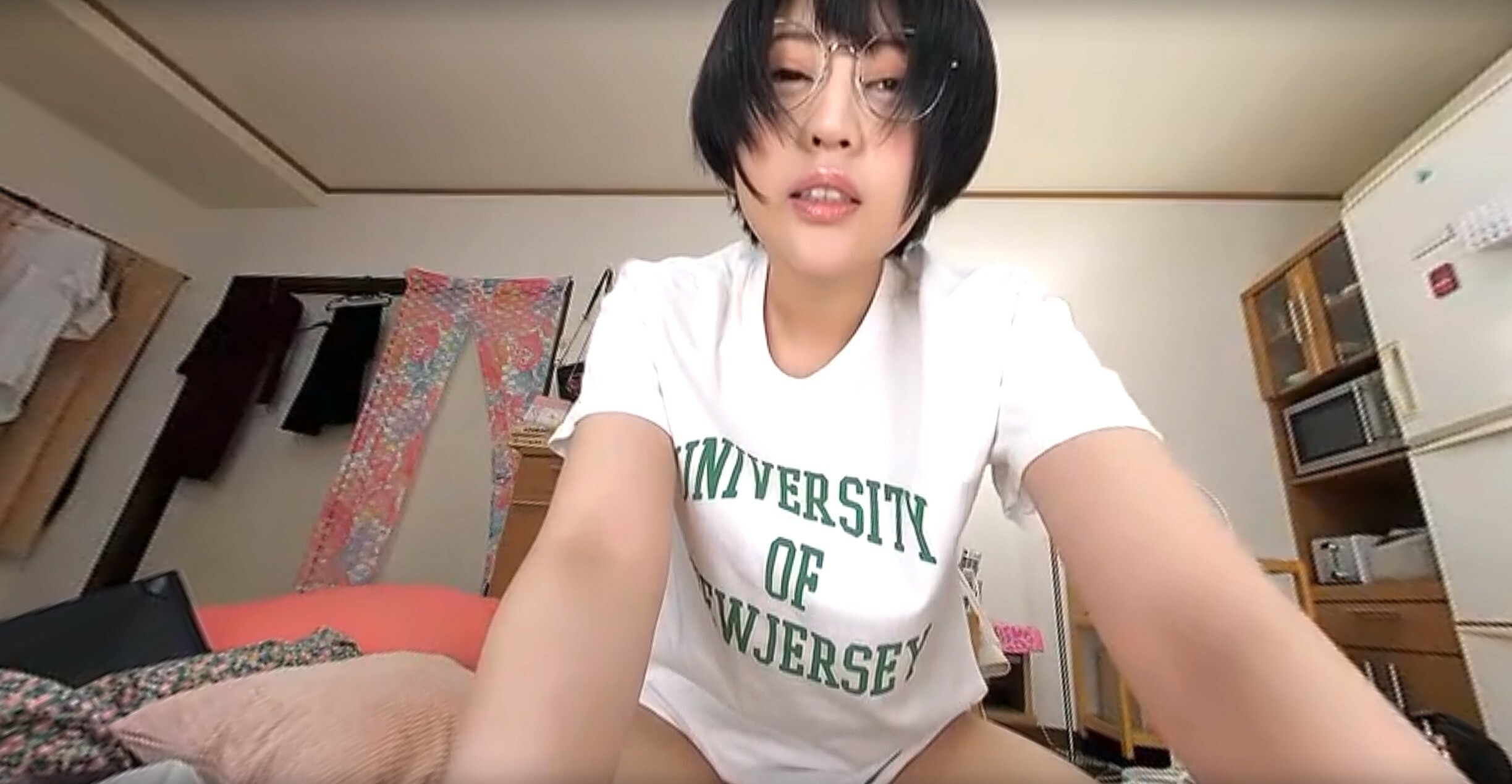 Hibiki-san, the boss of the company I work for, is usually a serious and strict woman… She lectured me again today for not doing my job well… She told me to go out for a drink as a reminder… When I took her home after she got drunk, I saw a messy room that I could never imagine from her usual appearance! Moreover, Hibiki-san took off her glasses, changed into her loungewear without noticing me, and suddenly started masturbating! Hibiki-san notices that I’ve been watching her and, perhaps out of a pent up sexual desire, comes on to me!Hibiki-san is excited to see a real cock for the first time in a long time! Hibiki gets so excited about a real cock that she doesn’t even use a rubber and irresponsibly inserts it raw! I cum inside of her as she comes with her hips swinging wildly…