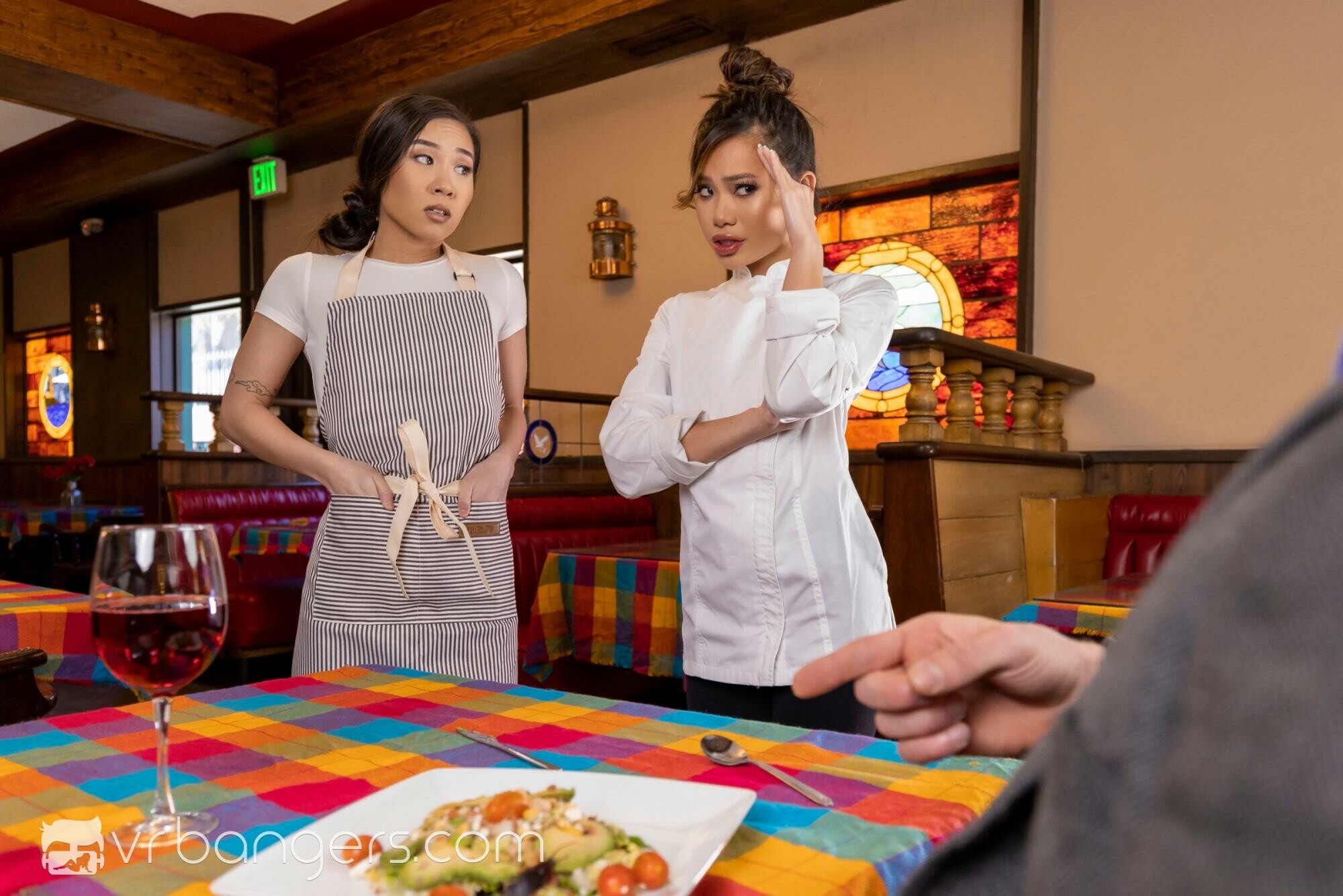 You must have heard about so-called Michelin Stars, have not you? Yeah, they are like… ranks given to the best restaurants in the world to commemorate their high-class and achievements. The point is that, when you are running your own luxury place, getting a Michelin Star to it is pretty much one of the most important things that you are aiming for – and everybody in your crew would do anything to achieve that commemoration, as it is a lifetime achievement that puts you in a very sophisticated spot. Inside of our latest threesome VR porn movie called Today’s Special we are turning you into one of those guides deciding about the Michelin Stars – and, unfortunately for the restaurant that you are visiting today, someone will mess up your order really bad, and now they will have to… pay the price. We have prepared not one but two Asian VR porn stars for you to have some fun with inside of this virtual reality xxx fantasy – Vina Sky and Kimmy Kimm – who will become the waitress and the chef – both responsible for your messed-up order. Sooner or later, when the girl will realize that you are who you are, they will really try to make up and somehow recover from the mess that has just happened – starting with a nice head on behalf of this blowjob VR porn scene. Then, this latest release from VRBangers.com will get even more interesting, as soon enough you will actually get to fuck the vixens – and yes, both of them will be for you to enjoy here and now. Wear your VR goggles to see if they really deserve that Michelin Star – and no, not because of their cooking skills, that is for sure, but… who cares? You got to fuck them, instead – and that is all that matters!