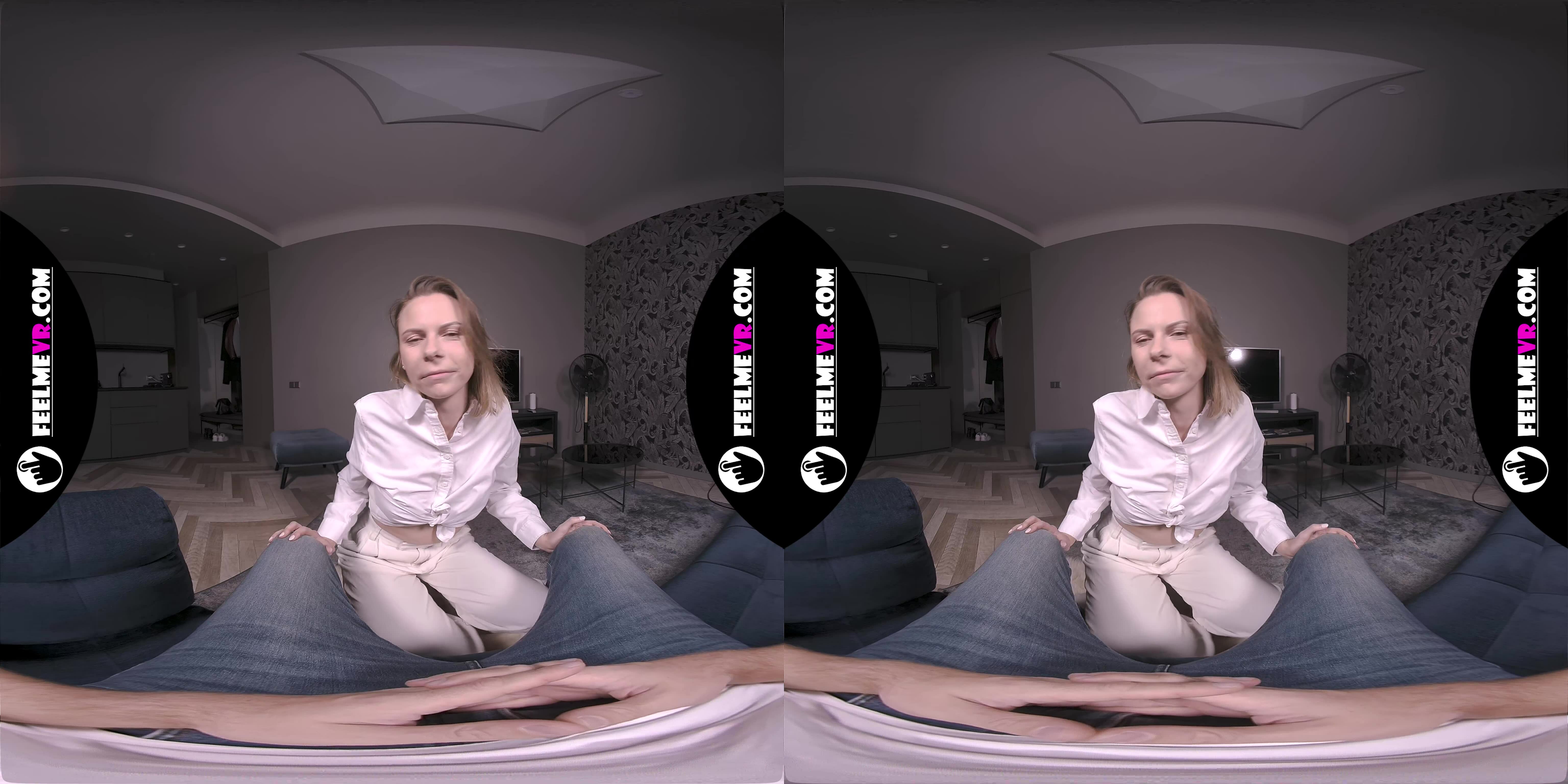 The way she starts slow, with those seductive moves, builds this crazy tension. When she gets into the sensual tease, swaying and stripping, it's absolutely mesmerising. Honestly, the way her eyes lock with yours through the headset? Pure magic, dude. My heart was racing as the scene heated up, every gesture ramping up the desire.
