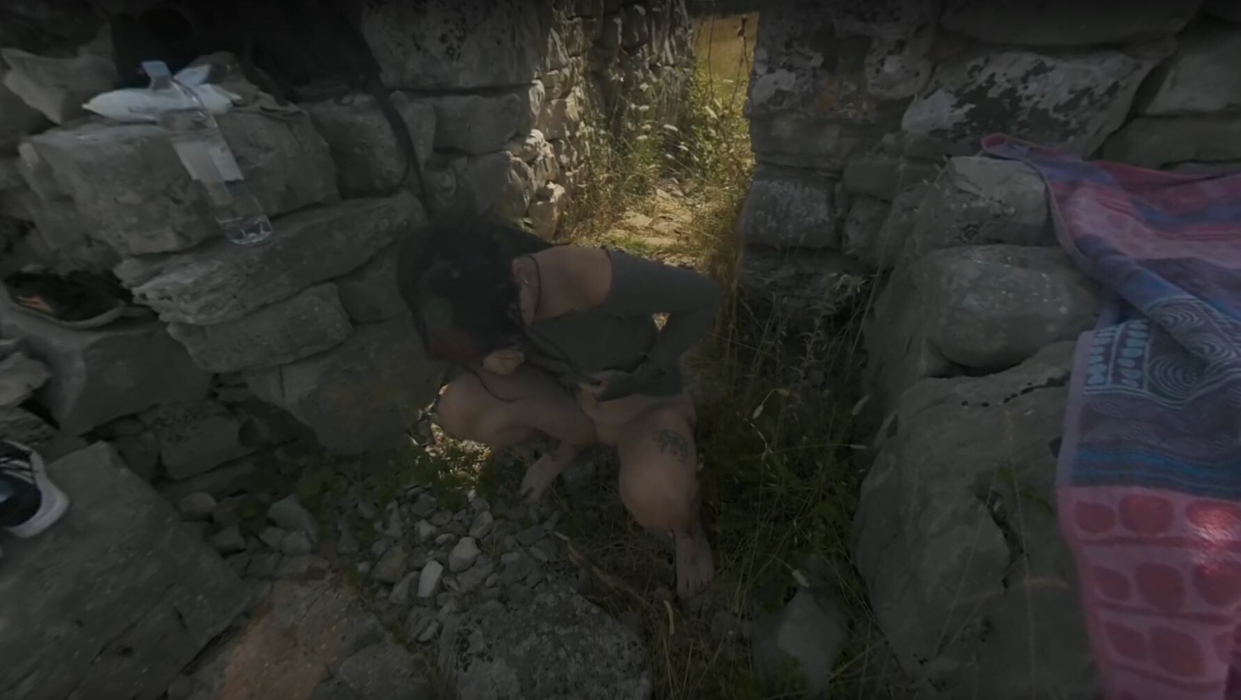 Hot Tattoo Model Brille Masturbating With Dildo And Hitachi Vibrator In Ancient Ruins Risky Public