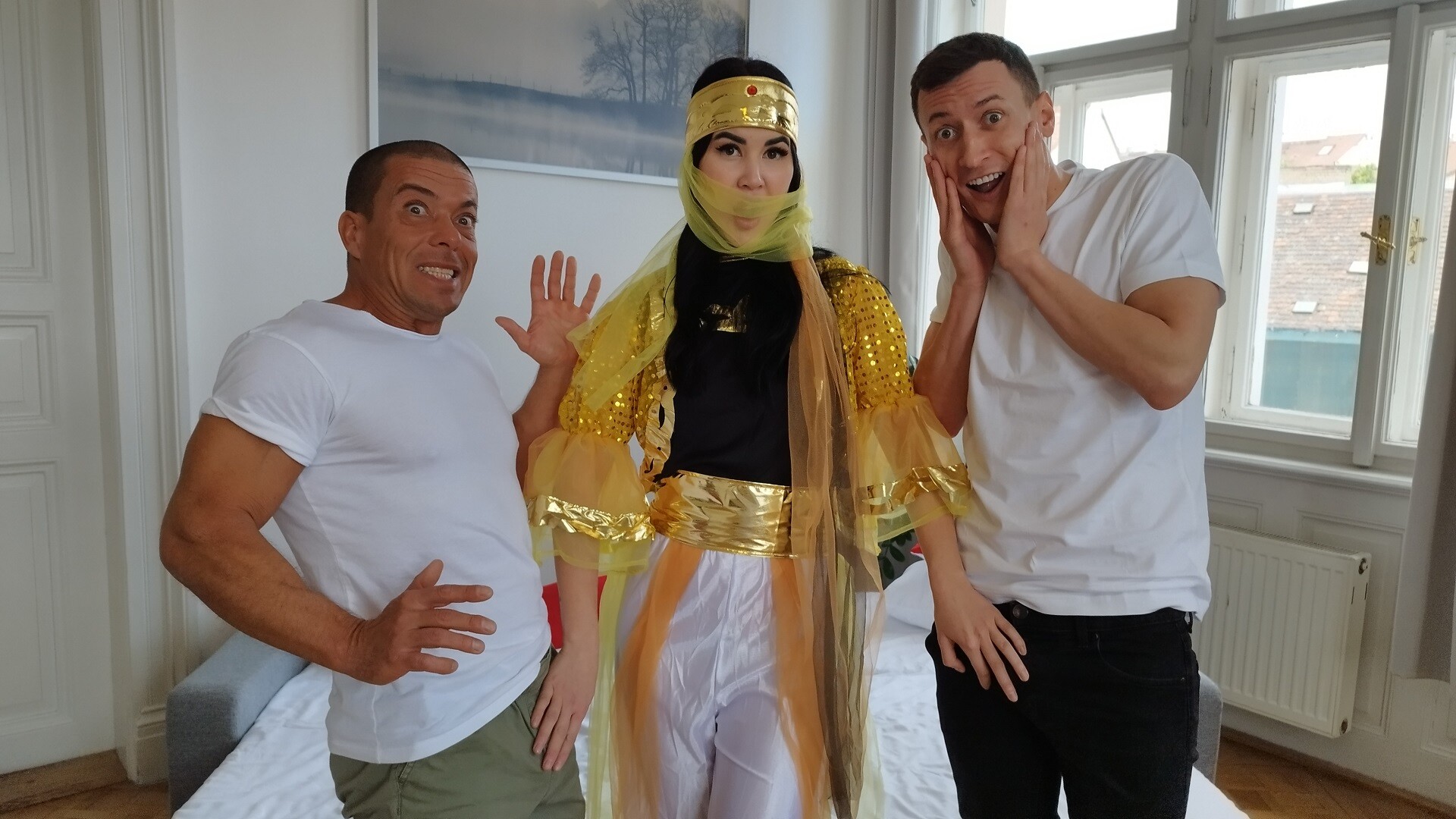 Man, I gotta tell ya, diving into this VR scene with Lady Dee as an exotic genie is straight-up wild! From the get-go, you’re pulled into this fantasy world where she’s summoning some serious heat with two lucky dudes. The way she locks eyes, teasing with every move, it’s like she’s casting a spell on you through that immersive VR. Honestly, it’s almost too real.